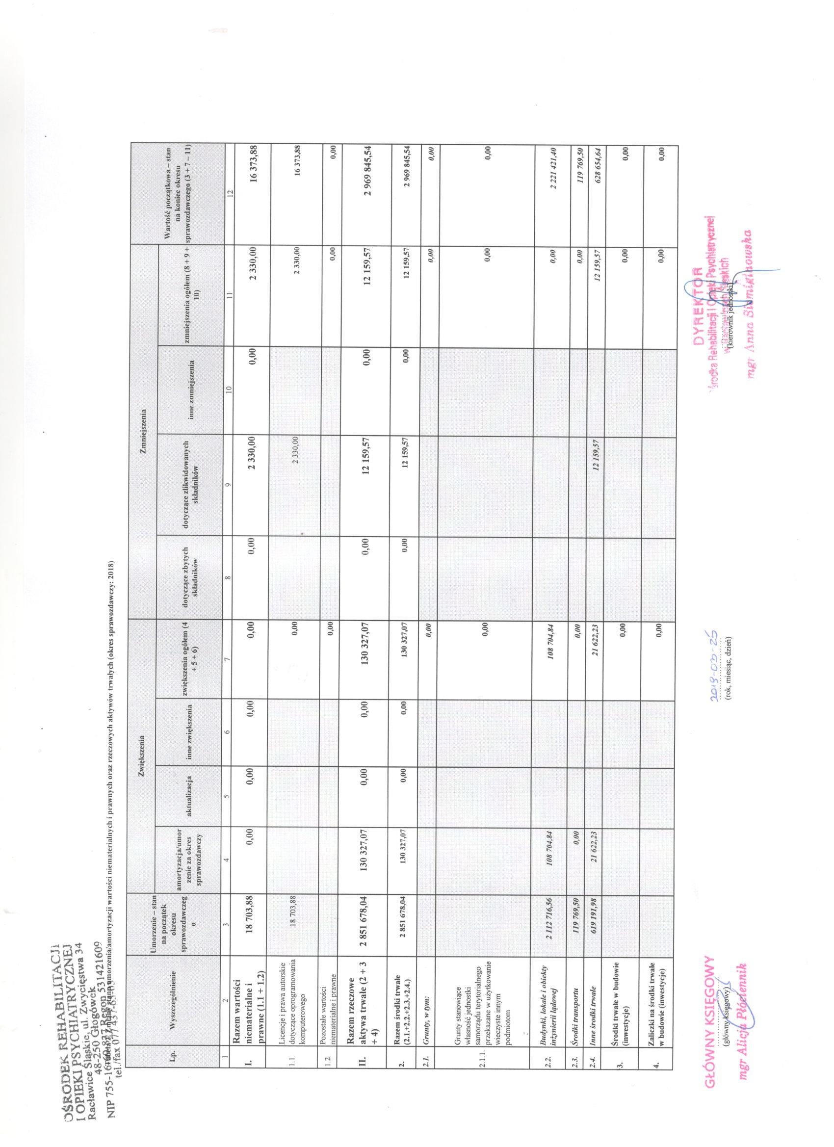 Załaczniki do informacji dodatkowej: