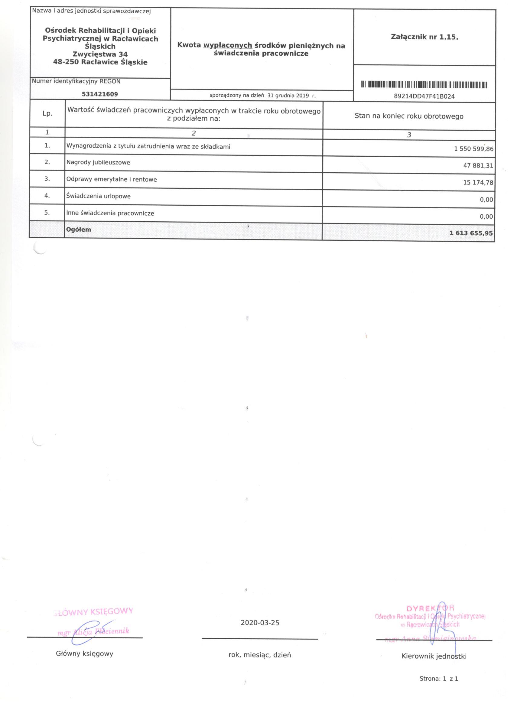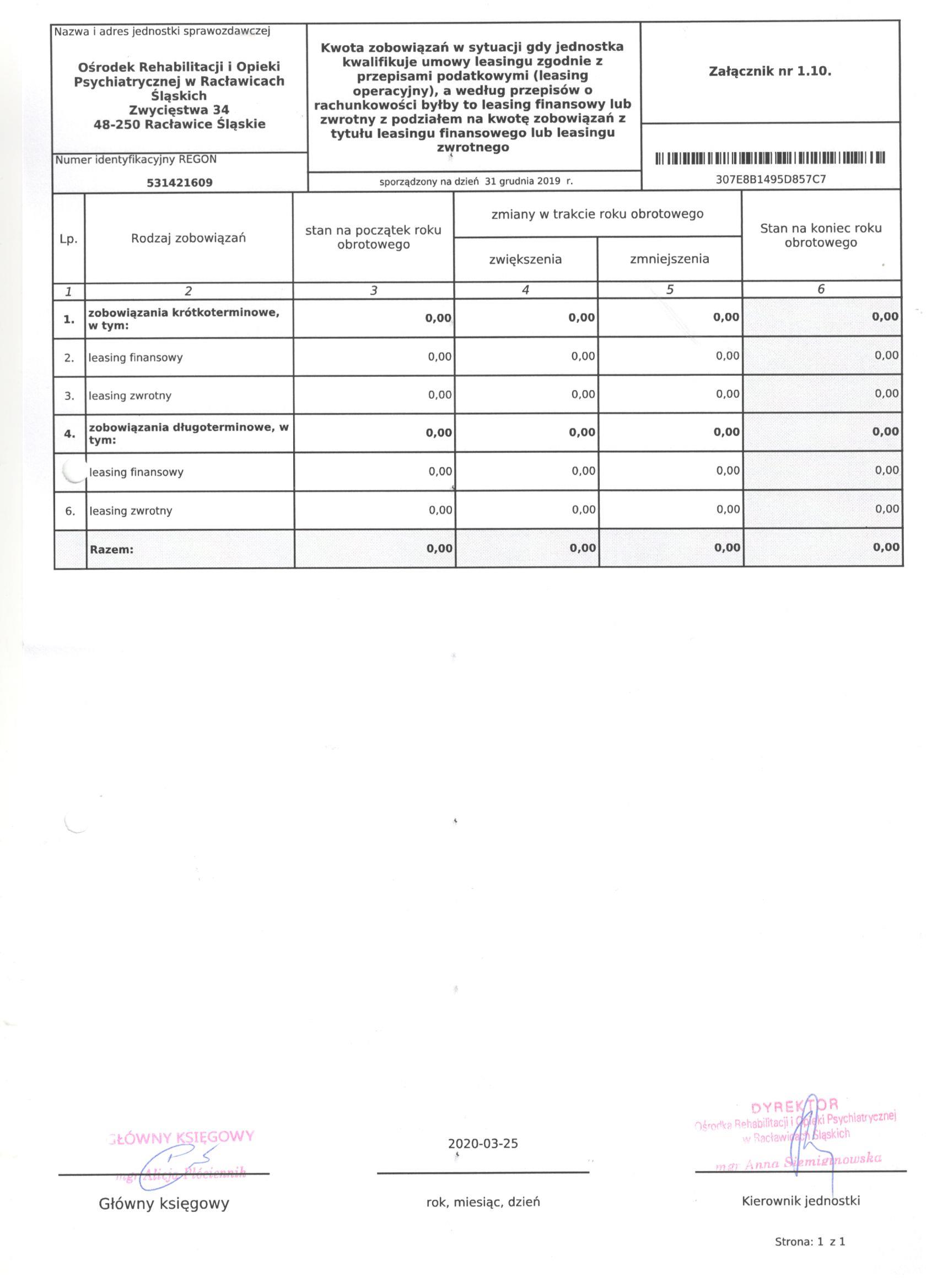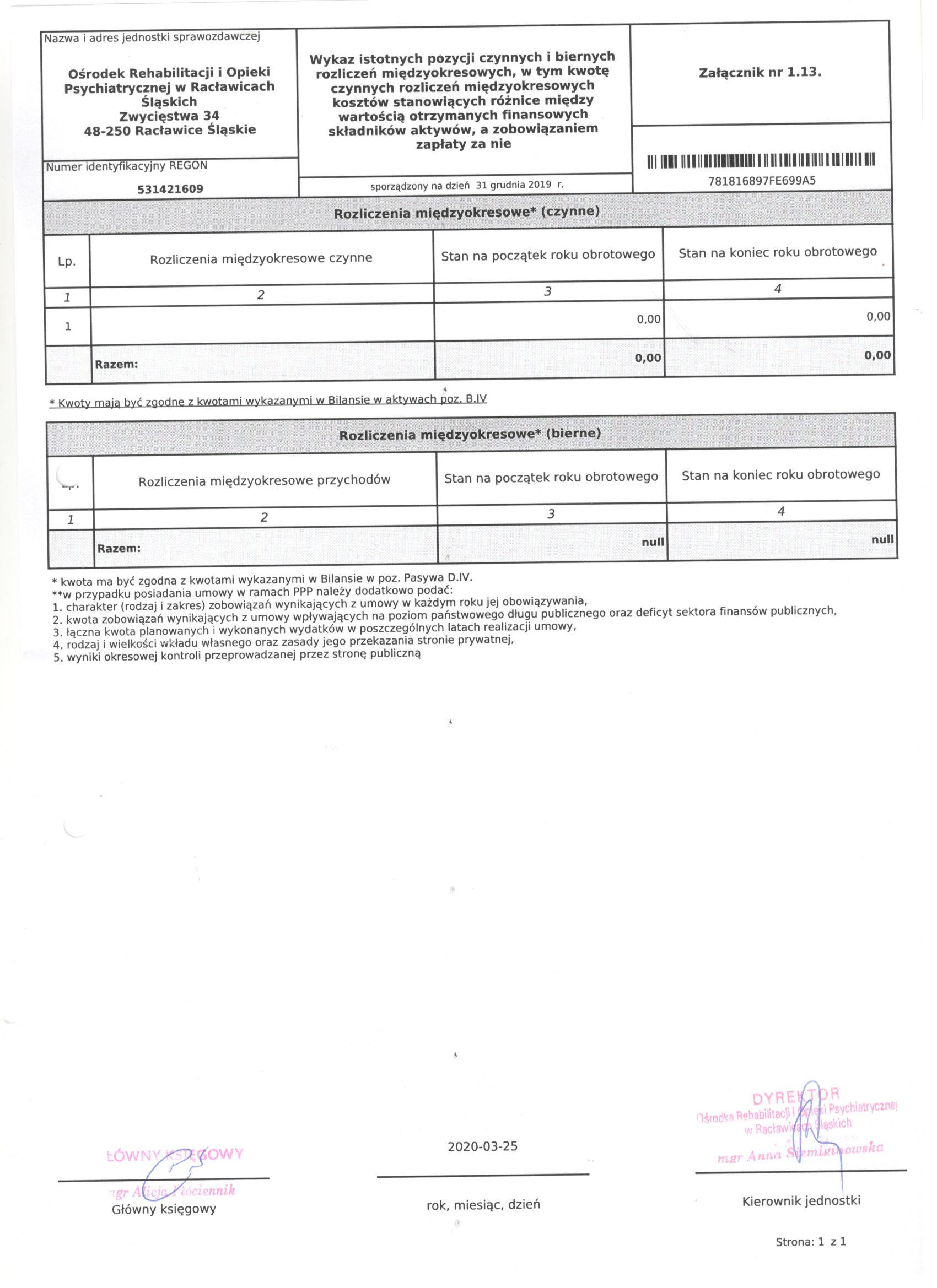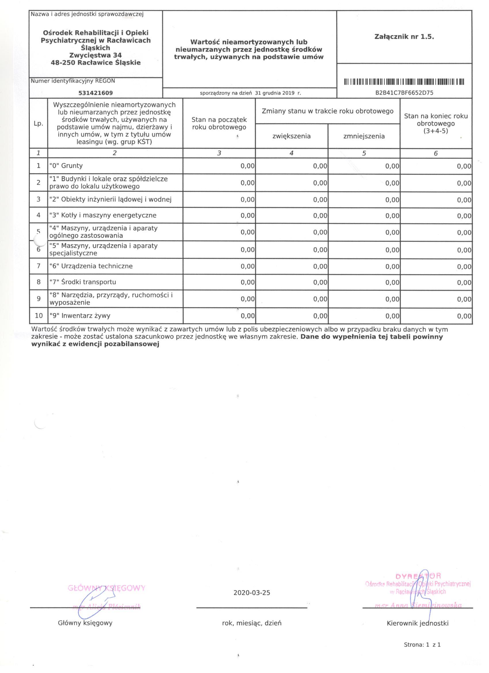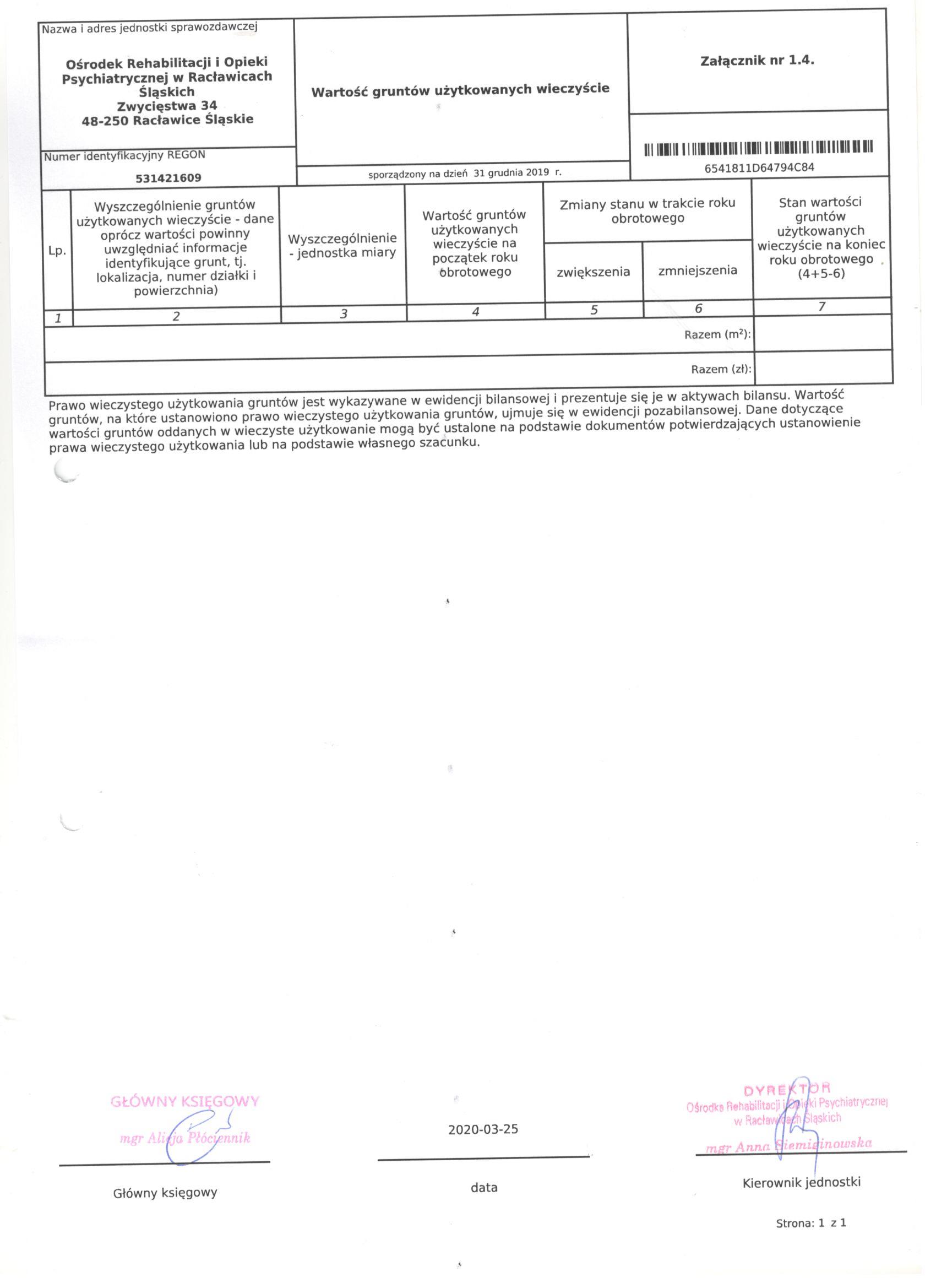 Bilans Jednostki Budżetowej sporządzony na dzień 31 grudnia 2019