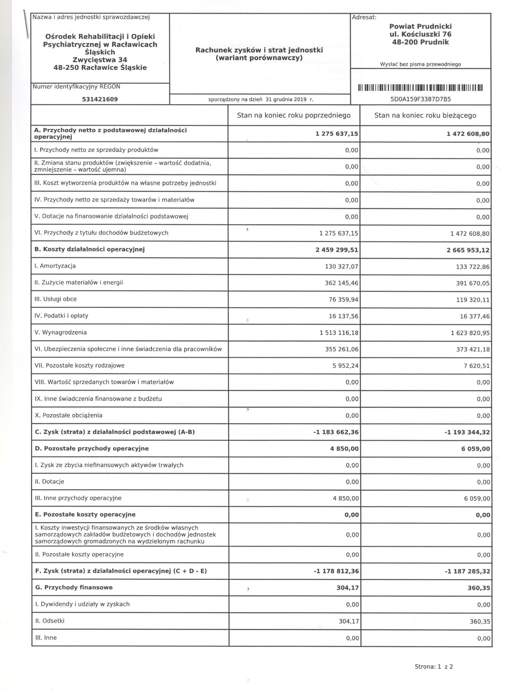 Rachunek zysków i strat: