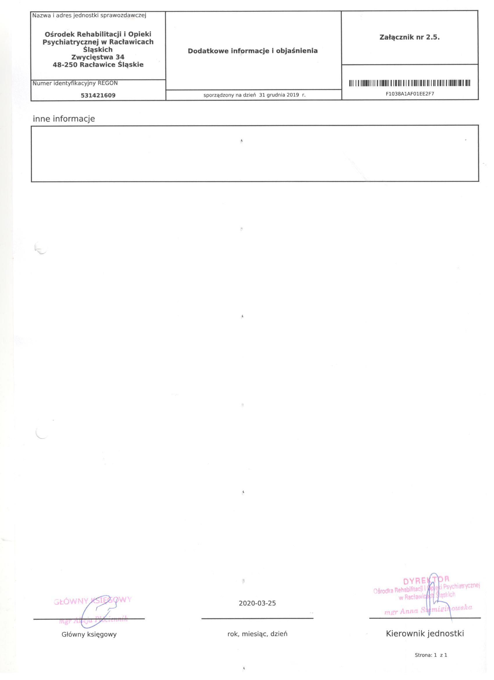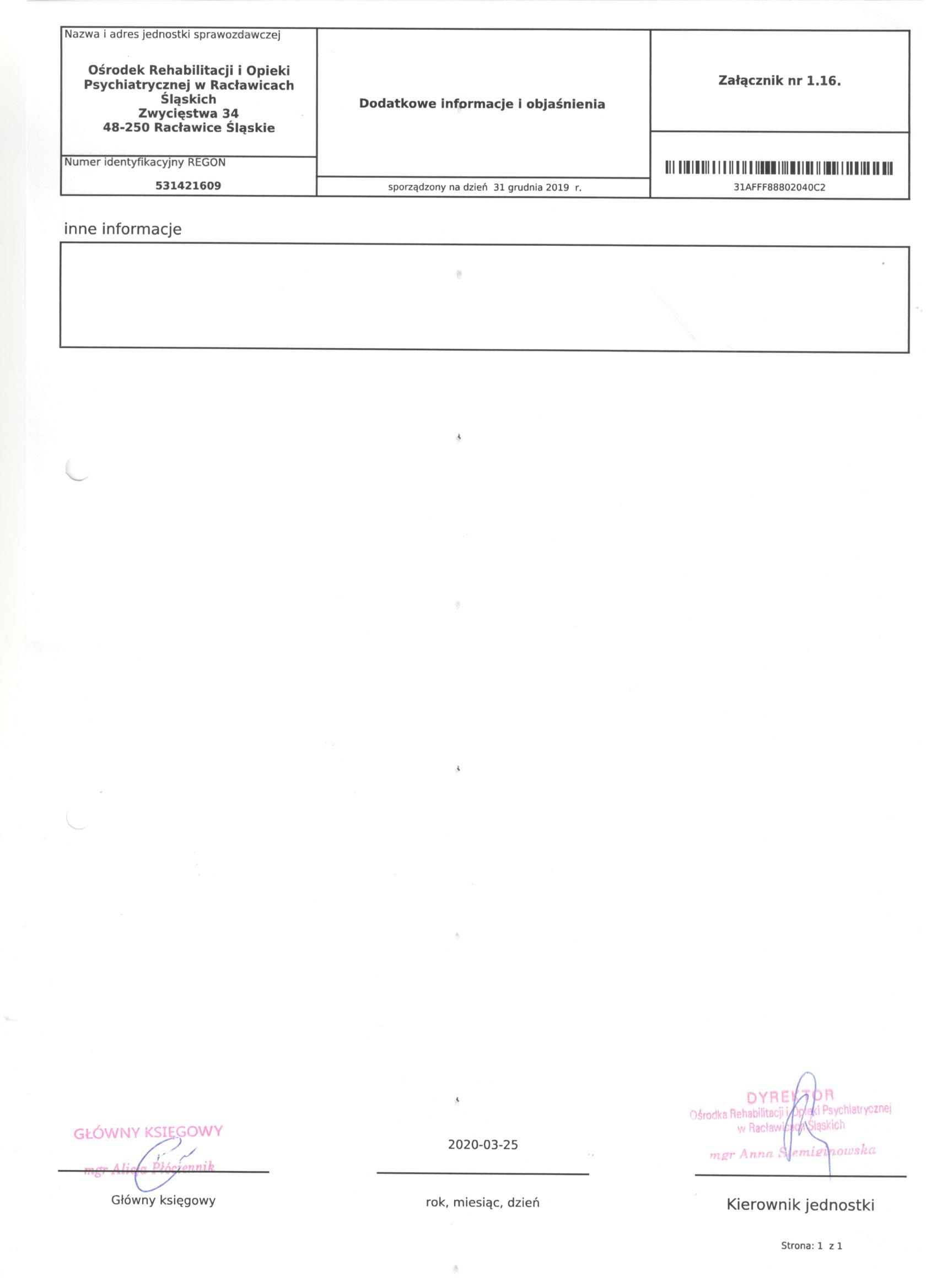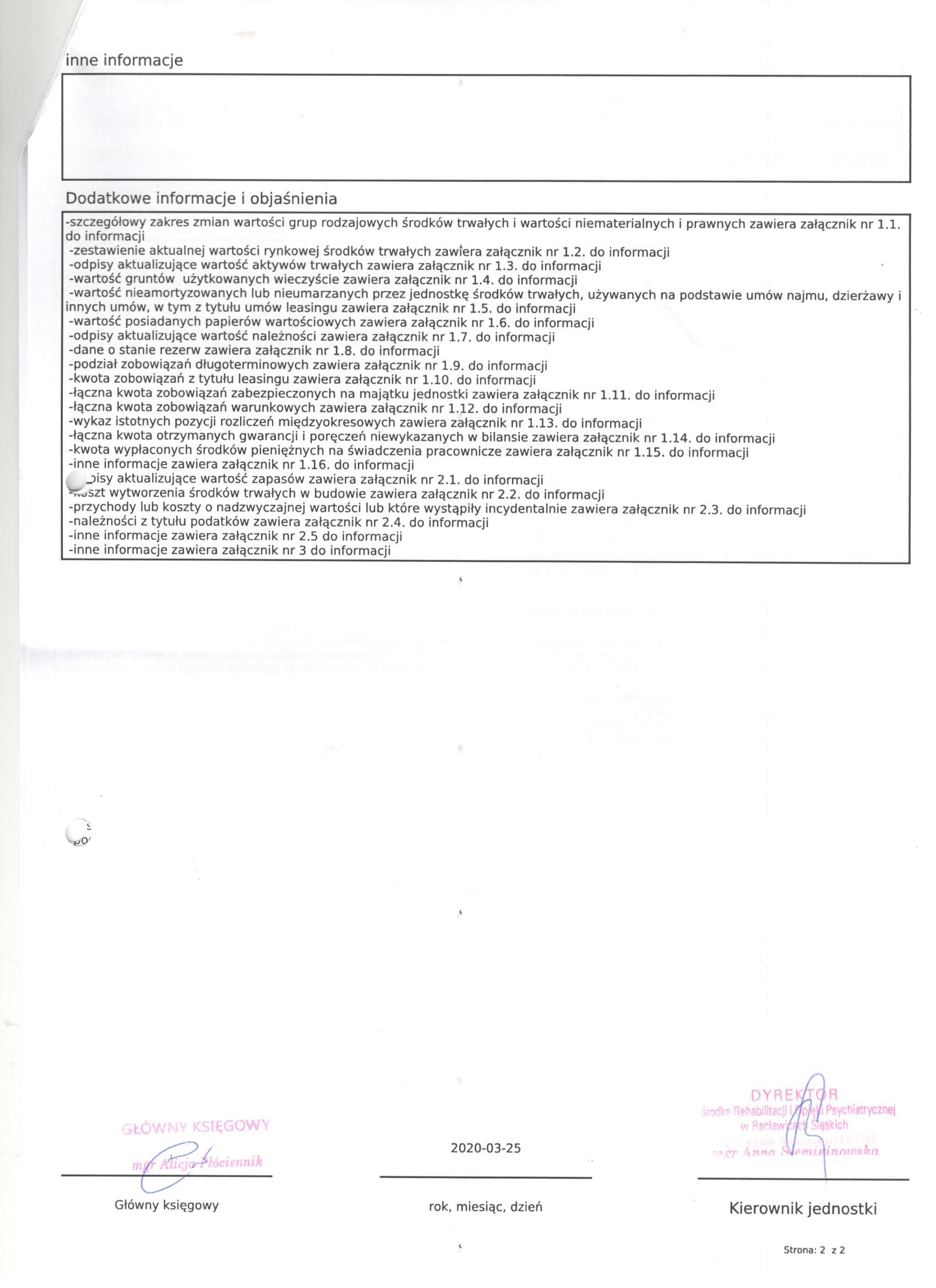Informacja dodatkowa i załączniki: