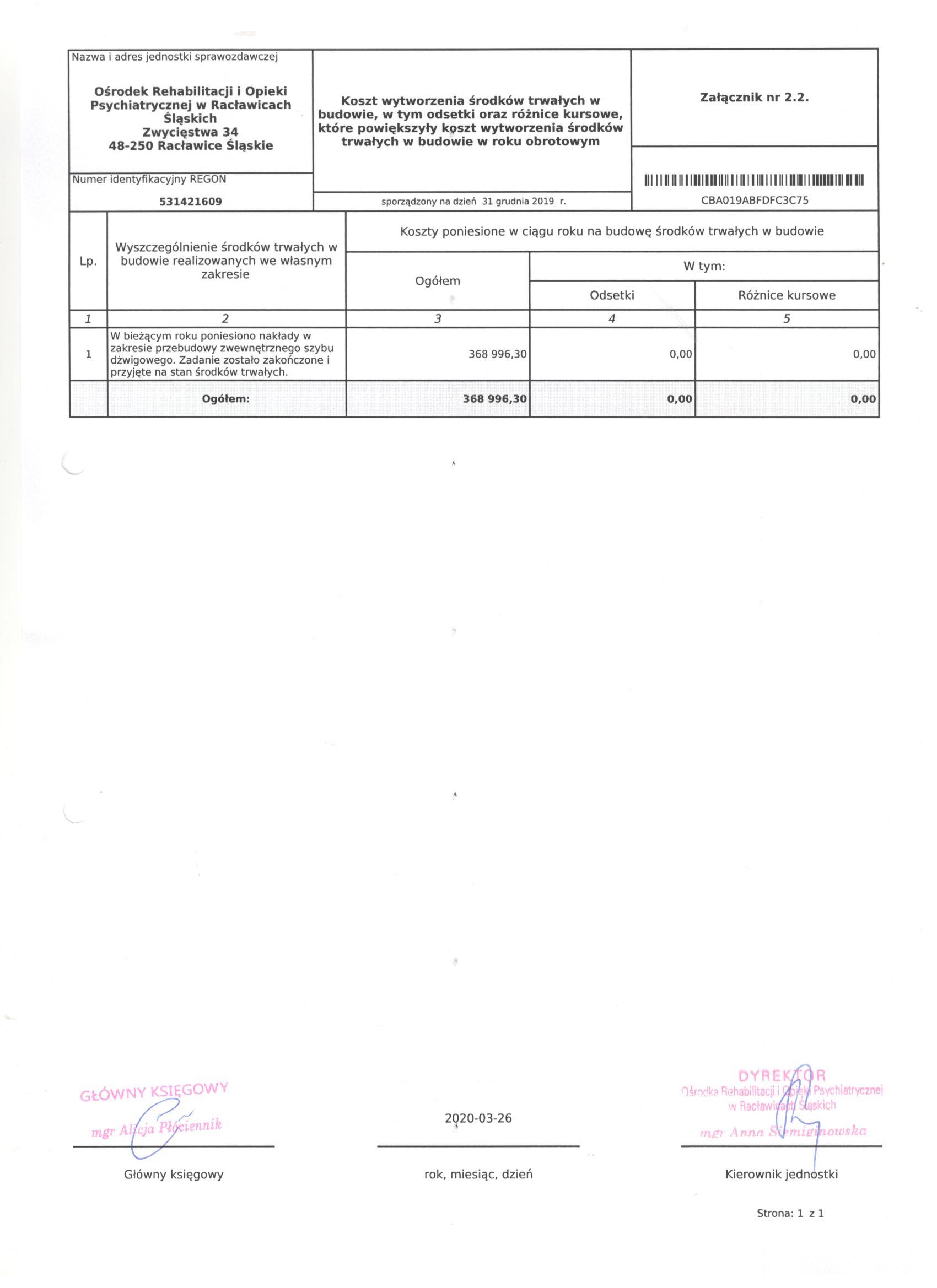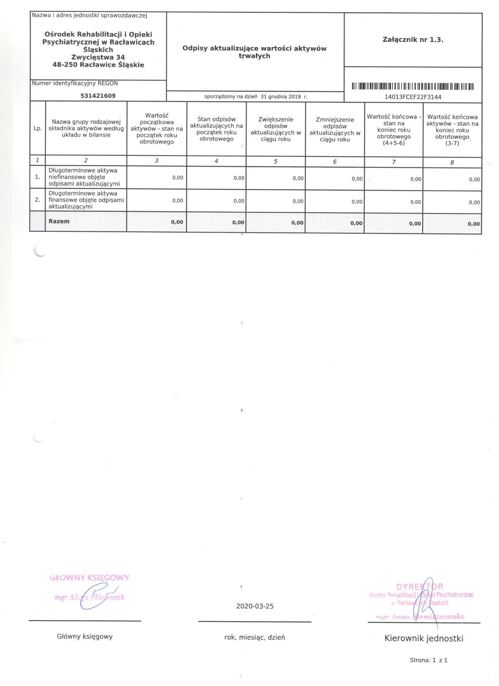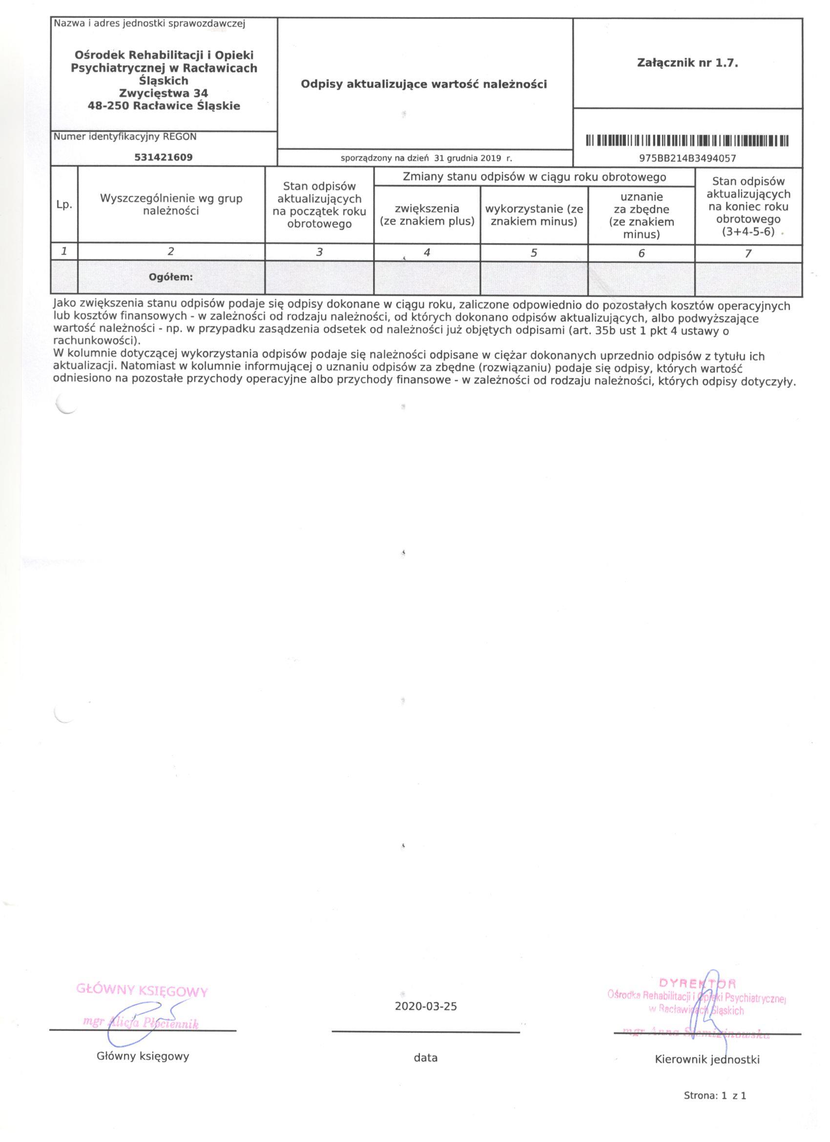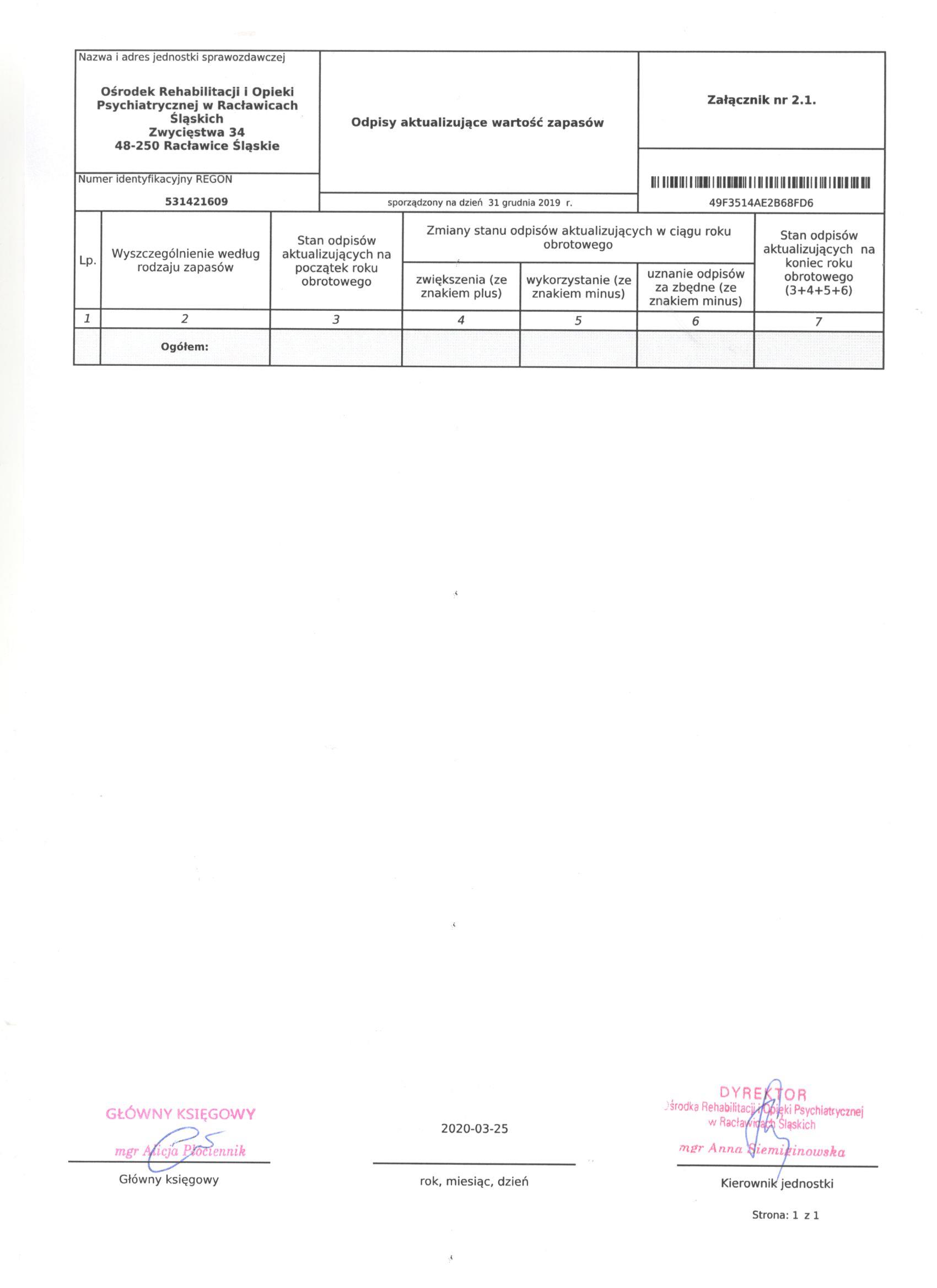 Historia zmian strony: "Bilans Jednostki Budżetowej sporządzony na dzień 31 grudnia 2019"