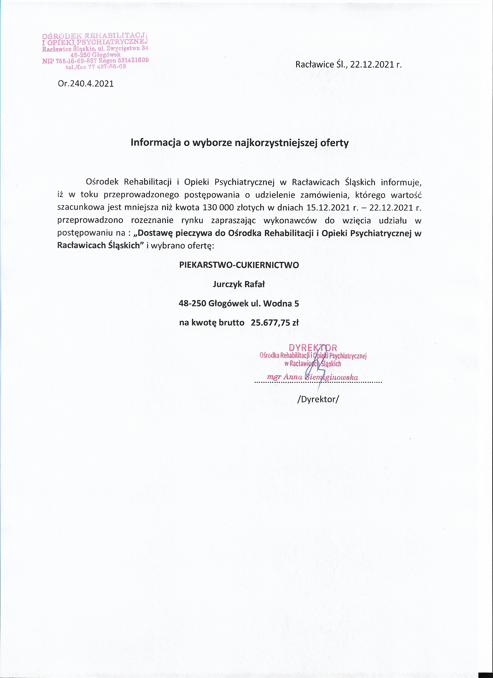 | Data wytworzenia dokumentu/informacji i publikacja w BIP: środa, 22 grudnia 2021r. godz.:13:01 | |